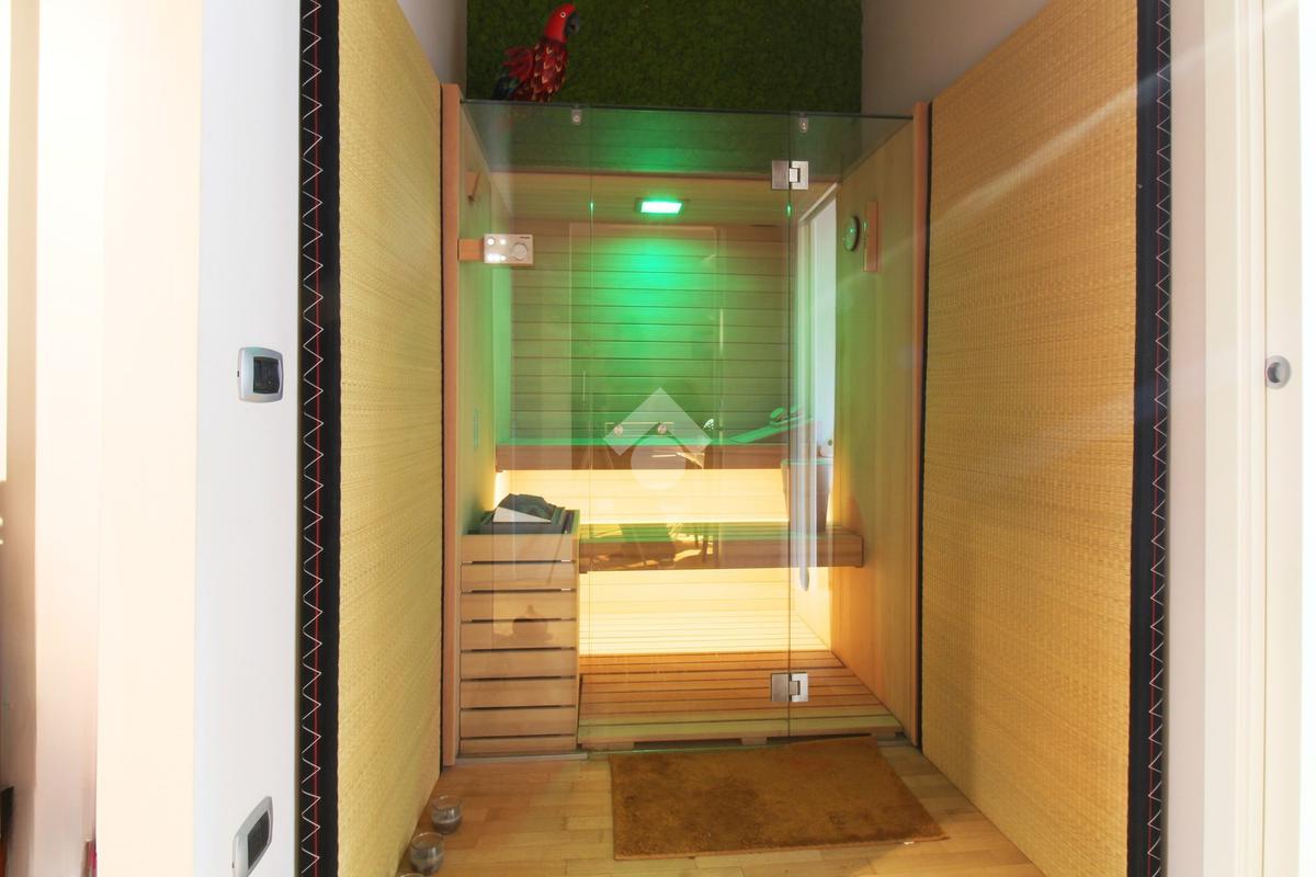 Elemento distintivo della soluzione è la sauna privata, un ambiente dedicato al benessere che aggiunge un tocco di esclusività e trasforma la quotidianità in un autentico momento di relax.